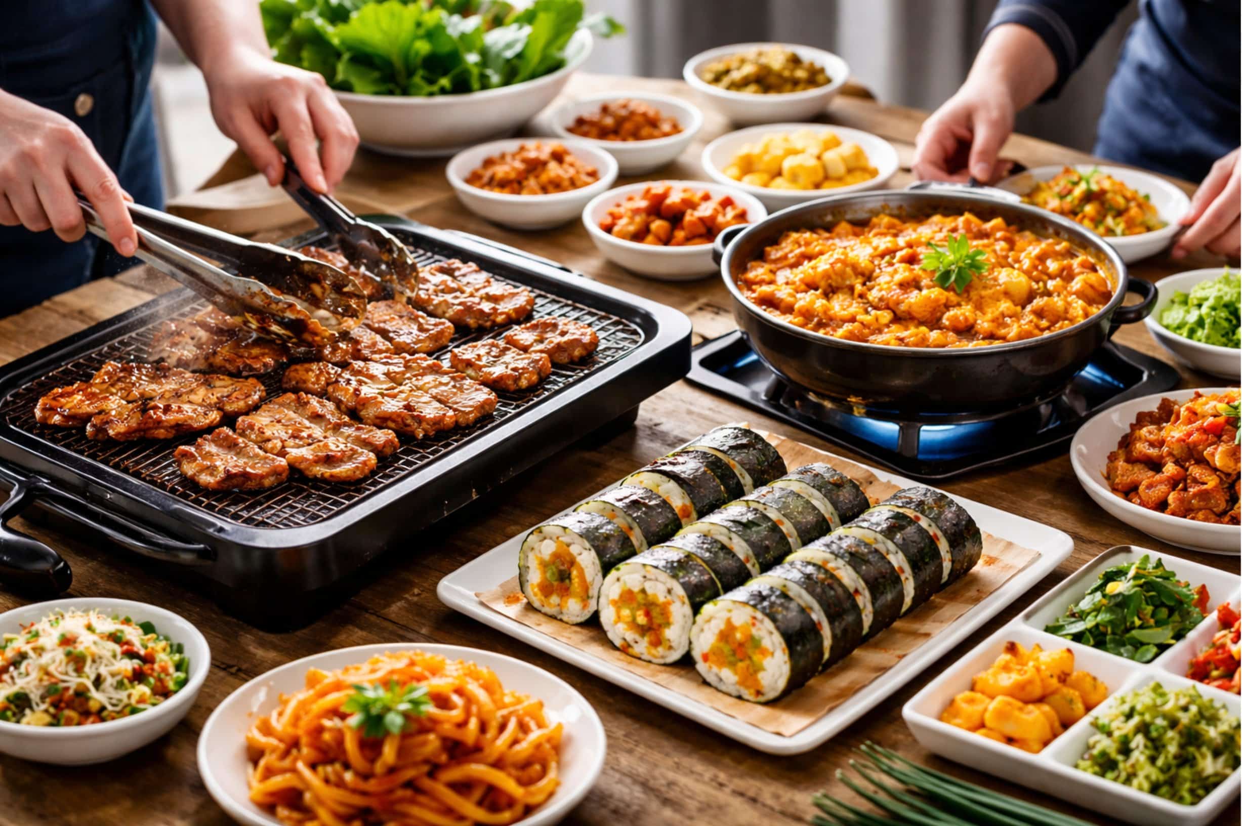 Experience the vibrant flavors of Korea in this hands-on cooking adventure! Perfect for all skill levels, you’ll explore essential techniques as you roll, stir, and grill your way through a variety of Korean-inspired dishes. Learn how to balance bold flavors, craft comforting stews, and prepare savory grilled delights, all in a fun, interactive environment. Share laughs, enjoy amazing aromas, and discover the joy of cooking Korean cuisine. By the end, you’ll leave with new skills, delicious creations, and a memorable taste of Korea to savor at home.