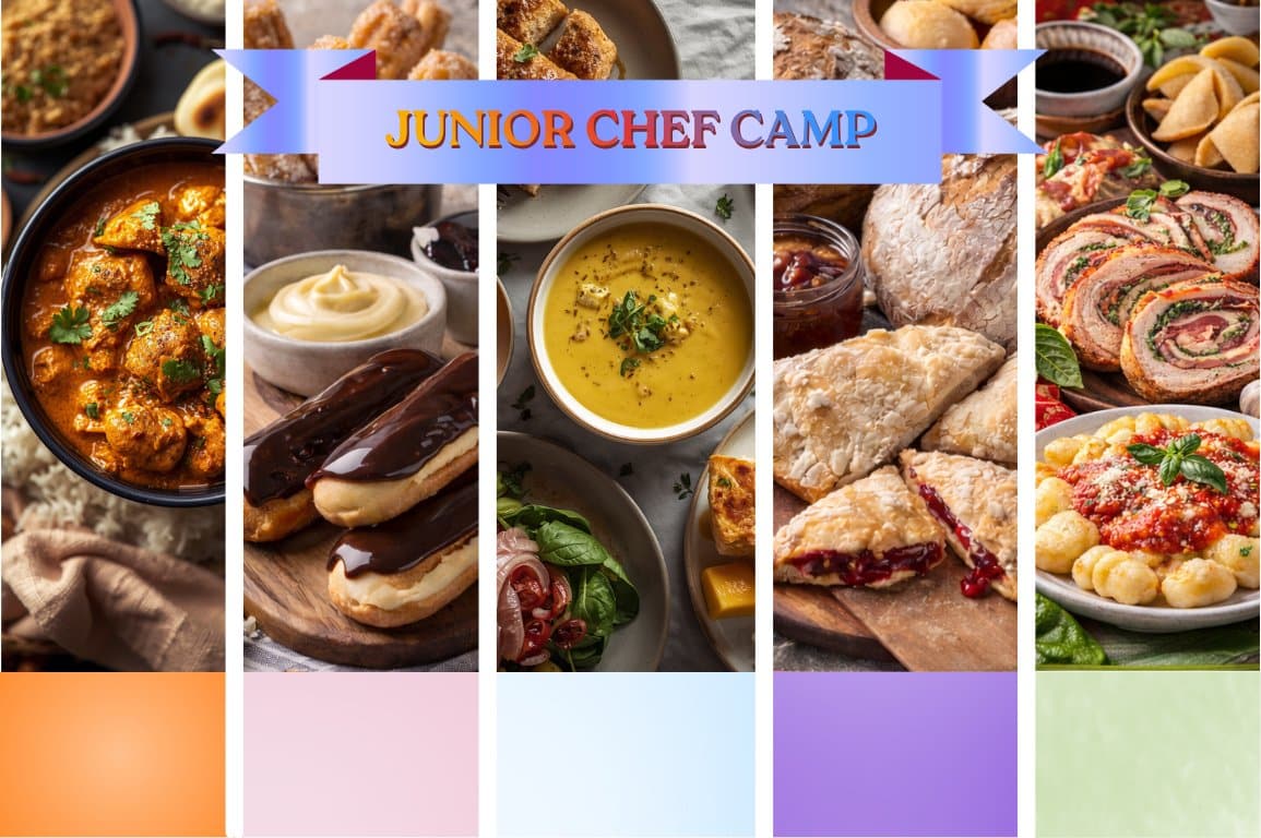 This unique “2-in-1” camp blends cooking and baking to give students a well-rounded culinary foundation. Along the way, they’ll learn essential kitchen skills such as knife safety, dough making, seasoning, frying, and baking techniques—all in a supportive, high-energy environment.